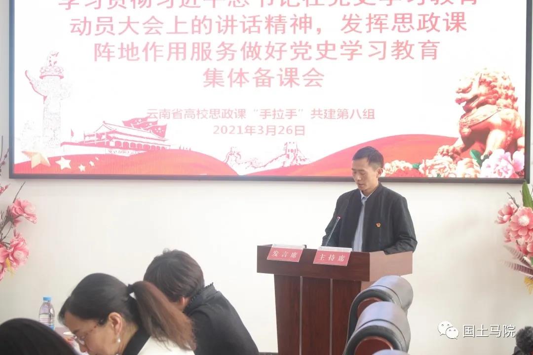 2021年3月26日,云南省高校思政课“手拉手”共建第八组集体备课会在云南新兴职业学院举行。此次备课会由昆明医科大学beat365亚洲体育官方网站主办,云南新兴职业学院承办,备课会主题为“学习贯彻习近平总书记在党史学习教育动员大会上的讲话精神,发挥思政课阵地作用服务做好党史学习教育”,beat365亚洲体育官方网站24名教师代表参加了此次共建活动。