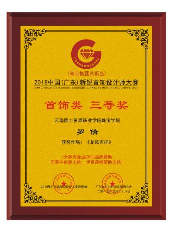 近日,“誉宝杯”2018中国新锐首饰设计大赛圆满结束,珠宝玉石学院2016级首饰设计与工艺专业学生在本次比赛中,表现出色,取得了优异的成绩,共获得以下奖项: