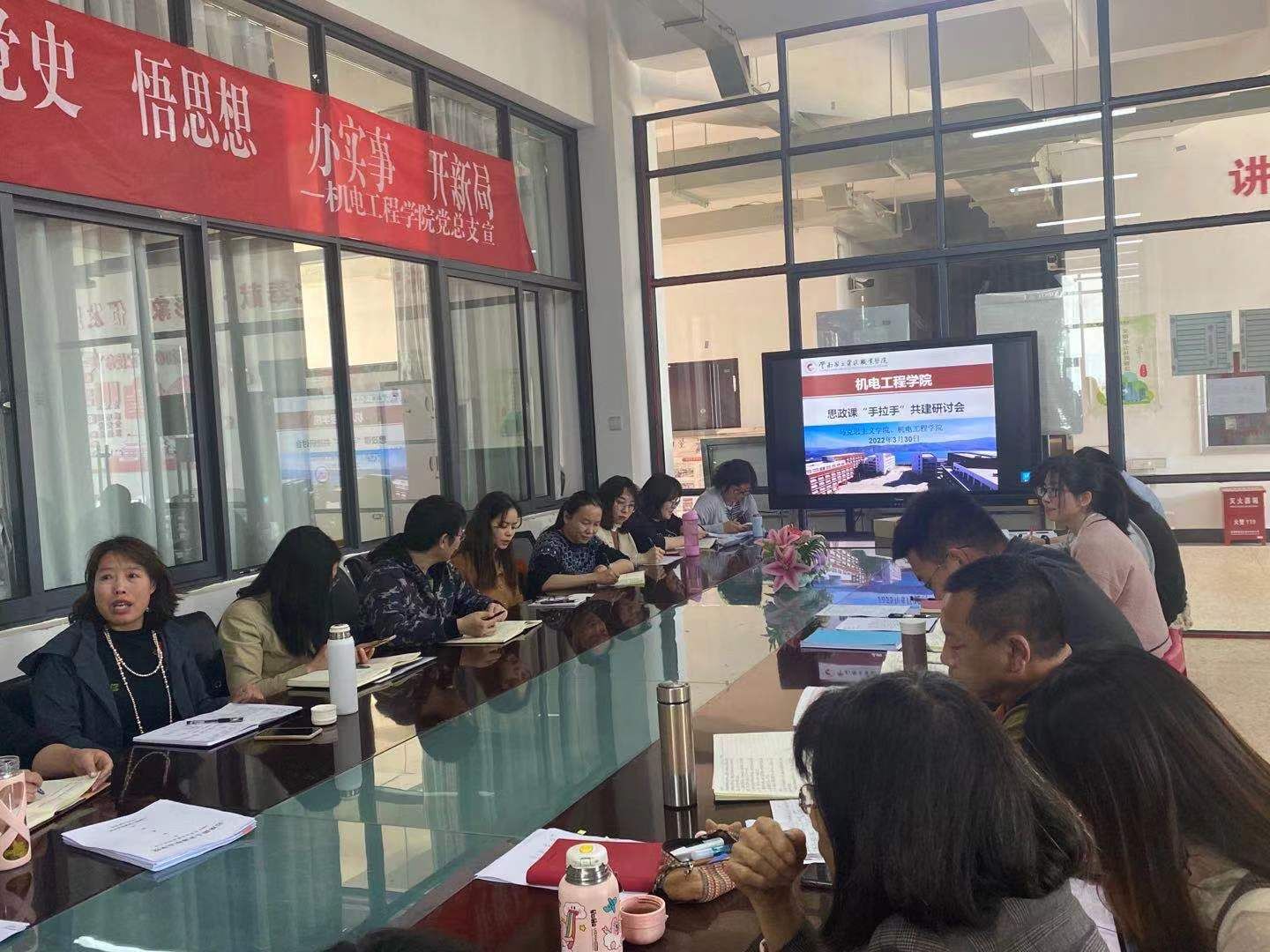 为深入贯彻习近平总书记关于教育及思想政治工作的重要论述及相关精神,全面落实云南省教育厅、云南国土资源职业学院课程思政建设工作要求,积极推进机电工程学院课程思政建设不断取得新成效,2022年3月30日下午,由beat365亚洲体育官方网站张延星院长带领唐兰兰、陈瑞平、许芬、吴晓娟、张朝敏、庄媛等六名思政课专职教师赴机电工程学院参加课程思政建设座谈会。机电工程学院党总支书记王春莲、机电工程学院院长张俊妍及机电工程学院全体教师参加了研讨会。