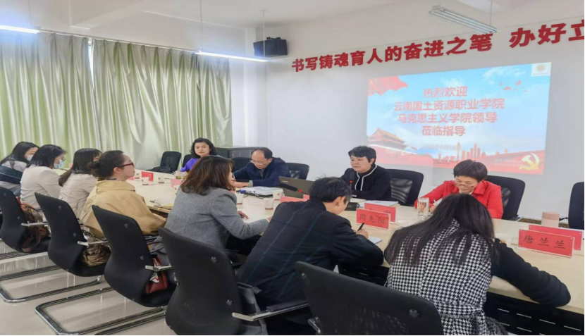 为进一步提高beat365亚洲体育官方网站的建设水平,推进思政课精品课程建设,2022年5月18日下午,beat365beat365亚洲体育官方网站院长张延星、党总支书记唐立颖以及马院各教研室主任、骨干教师代表一行到昆明冶金高等专科学校beat365亚洲体育官方网站就beat365亚洲体育官方网站建设、省级精品课程建设经验以及党建经验等方面开展学习交流。