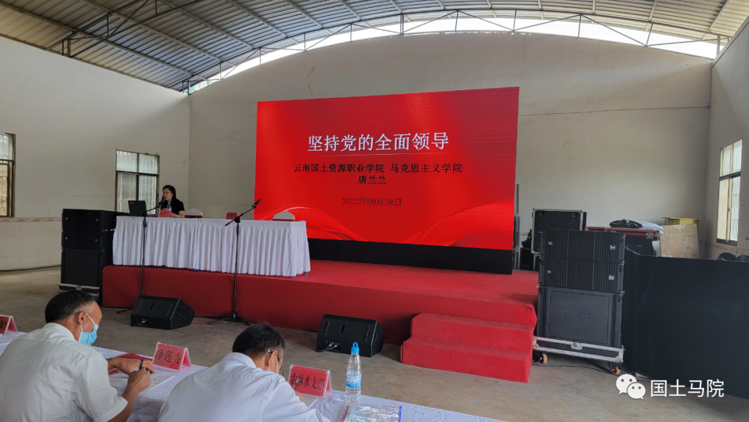 唐兰兰老师作了主题为“坚持党的全面领导”的专题理论宣讲。她围绕为什么坚持党的领导、如何理解党的领导是全面的、系统的、整体的,怎样才能做到自觉在思想上政治上行动上同党 、中央保持高度一致细致深刻地阐述中国共产党领导是中国特色社会主义最本质的特征,是中国特色社会主义制度的最大优势。党的领导是全面的、系统的、整体的。广大党员要增强“四个意识”,做到“两个维护”,自觉在思想上政治上行动上同党中央保持高度一致。