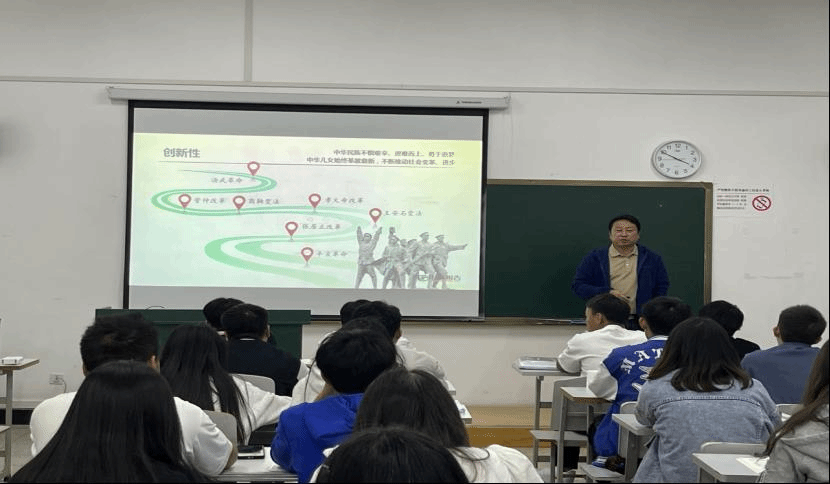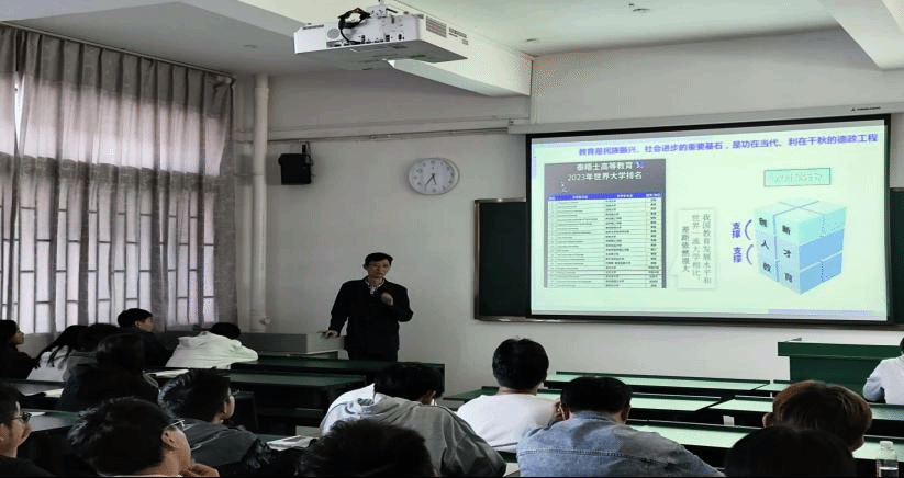 党委副书记李昆峰以“加快建设教育强国、科技强国、人才强国”为题,从着眼长远发展的重大抉择、铸就强国建设的坚实基础、加快强国建设的战略部署、充分发挥高校的重要作用等方面进行了讲解。授课过程中,充分进行案例分析,深入浅出的为同学们进行了阐释。