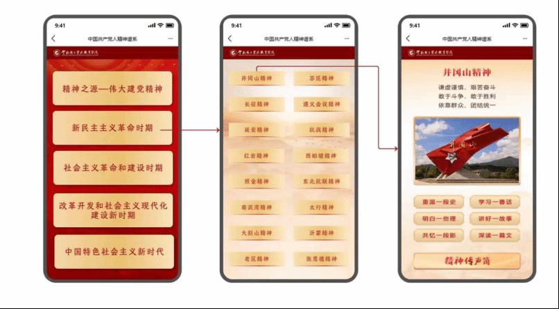 历时半年,精神谱系文化长廊二维码导览系统已完工验收。扫描各精神展板下方二维码,大家可以通过“重温一段史、学习一番话、明白一些理、讲好一故事、深度一篇文、共忆一段影和精神传声筒”等七个模块多角度、立体化地从精神内涵、历史背景和时代价值等方面,深入解读与学习包括中国共产党的精神之源——伟大建党精神,新民主主义革命时期、社会主义革命和建设时期、改革开放和社会主义现代化建设新时期、中国特色社会主义新时代四个时期共49种伟大精神。广大师生及参观者能够借由此平台回望百年党史,梳理我们党百年来探索形成的伟大精神财富,助力百年红色精神谱系更好融入教育,融入“大思政课”,培养德智体美劳全面发展的社会主义建设者和接班人。