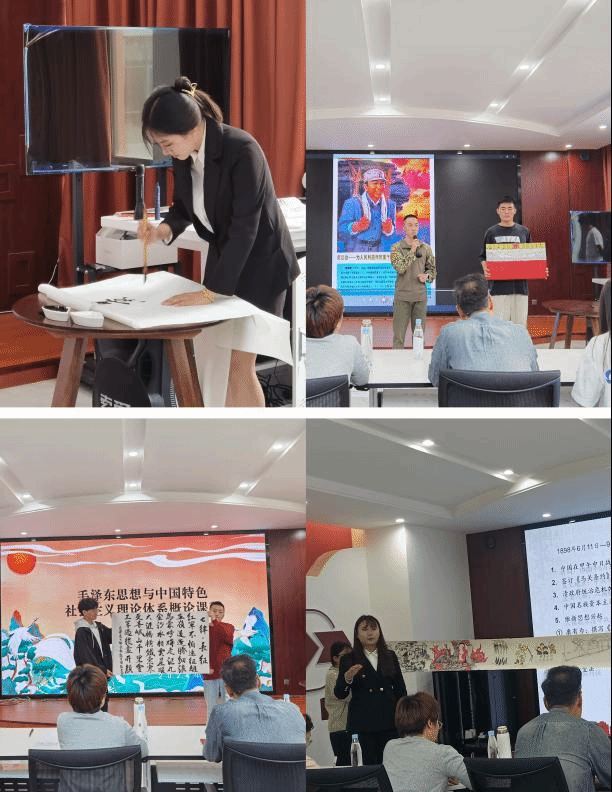 为贯彻落实习近平总书记对学校思政课建设作出的重要指示精神,全面贯彻党的教育方针,以中华优秀传统文化、革命文化和社会主义先进文化为力量根基,落实立德树人根本任务,不断开创新时代思政教育新局面,提高思政课的针对性和吸引力。“毛泽东思想和中国特色社会主义理论体系概论”课教研室于6月5日下午在尚能馆举办“诗词话语祭伟人 笔墨书画传精神”实践教学决赛暨作品汇报展示活动。建设工程学院副院长、夏雨书苑指导老师罗启钟,beat365亚洲体育官方网站教师高昆,夏雨书苑五位会员应邀担任评委,参加此次活动的还有“毛泽东思想和中国特色社会主义理论体系概论”课教研室全体教师以及2023级参与本次活动的部分同学代表。