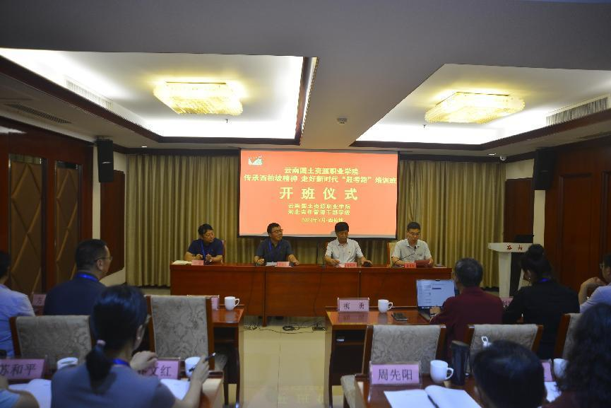 牛定柱在开班仪式上发表动员讲话,牛定柱表达了学校党委对本次学习的高度重视,并感谢河北青年管理干部学院提供的支持。他强调,此次学习的主题是“赶考”,要求全体成员深入学习西柏坡精神,不忘赶考初心,当好新时代“答卷人”。对此次培训提出四点学习要求:一是学精神:要深入学习西柏坡精神,理解其内涵,并将其与云南国土资源职业学院的教育理念和工作实际相结合。二是学传统:要继承和发扬“敢于斗争、敢于胜利”的光荣传统,以及“两个务必”的重要思想,即务必使同志们继续地保持谦虚、谨慎、不骄、不躁的作风,务必使同志们继续地保持艰苦奋斗的作风,并在此基础上加上“不忘初心,牢记使命”。三是学方法:要学习如何用习近平新时代中国特色社会主义思想的方法来解决工作中的具体问题,特别是要结合雄安新区的实地考察,找到贯通党和国家事业千年大计和教育百年大计的方法。四是学纪律:要强化纪律意识,将纪律教育学习与实际工作相结合,做到学以致用、知行合一,在实践中不断提高自己的政治觉悟和纪律意识,做到忠诚干净担当。牛定柱希望全体成员能够转换角色,以学员的身份全身心投入学习,成为学习和纪律的标兵。他鼓励大家在学习过程中要更加主动、积极、刻苦、深入,并结合工作实际进行思考和感悟。