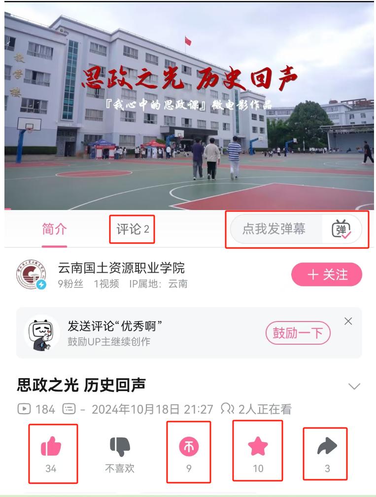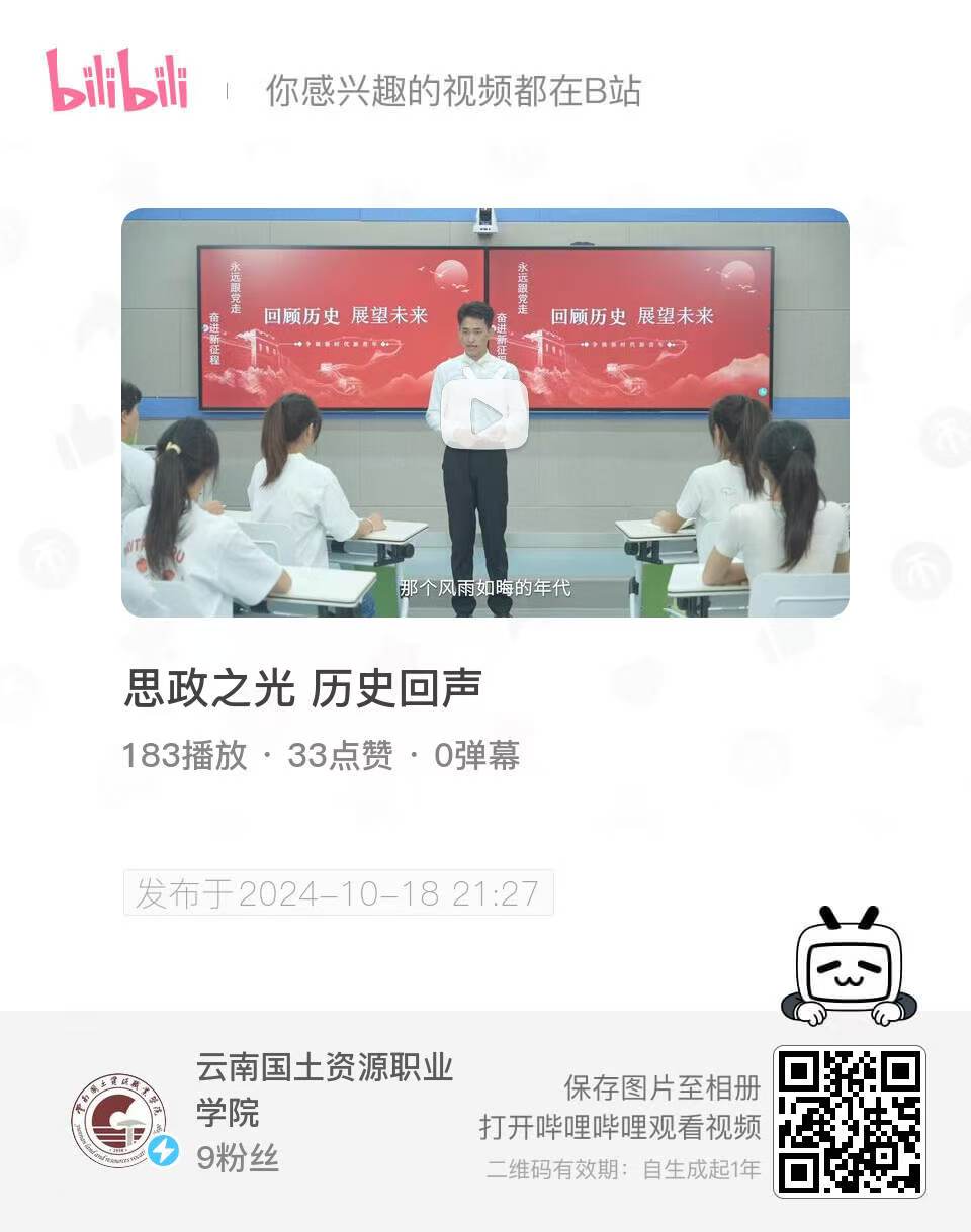 为UP主“云南国土资源职业学院”的参赛作品《思政之光 历史回声》完整视频以及六条小视频进行