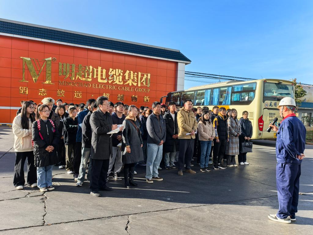 为深入贯彻落实习近平新时代中国特色社会主义思想和党的二十大精神,贯彻落实习近平总书记关于“大思政课”建设的重要指示批示精神。12月9日,beat365亚洲体育官方网站组织24级智慧城市管理技术、无人机测绘技术专业的学生到昆明明超电缆有限公司开展了一场别样的思政课。beat365副校长齐武福、张云霞,beat365亚洲体育官方网站院长张延星,以及beat365亚洲体育官方网站第一党支部的党员教师,共同开展了此次“行走的思政课”暨“党建+团建”活动。