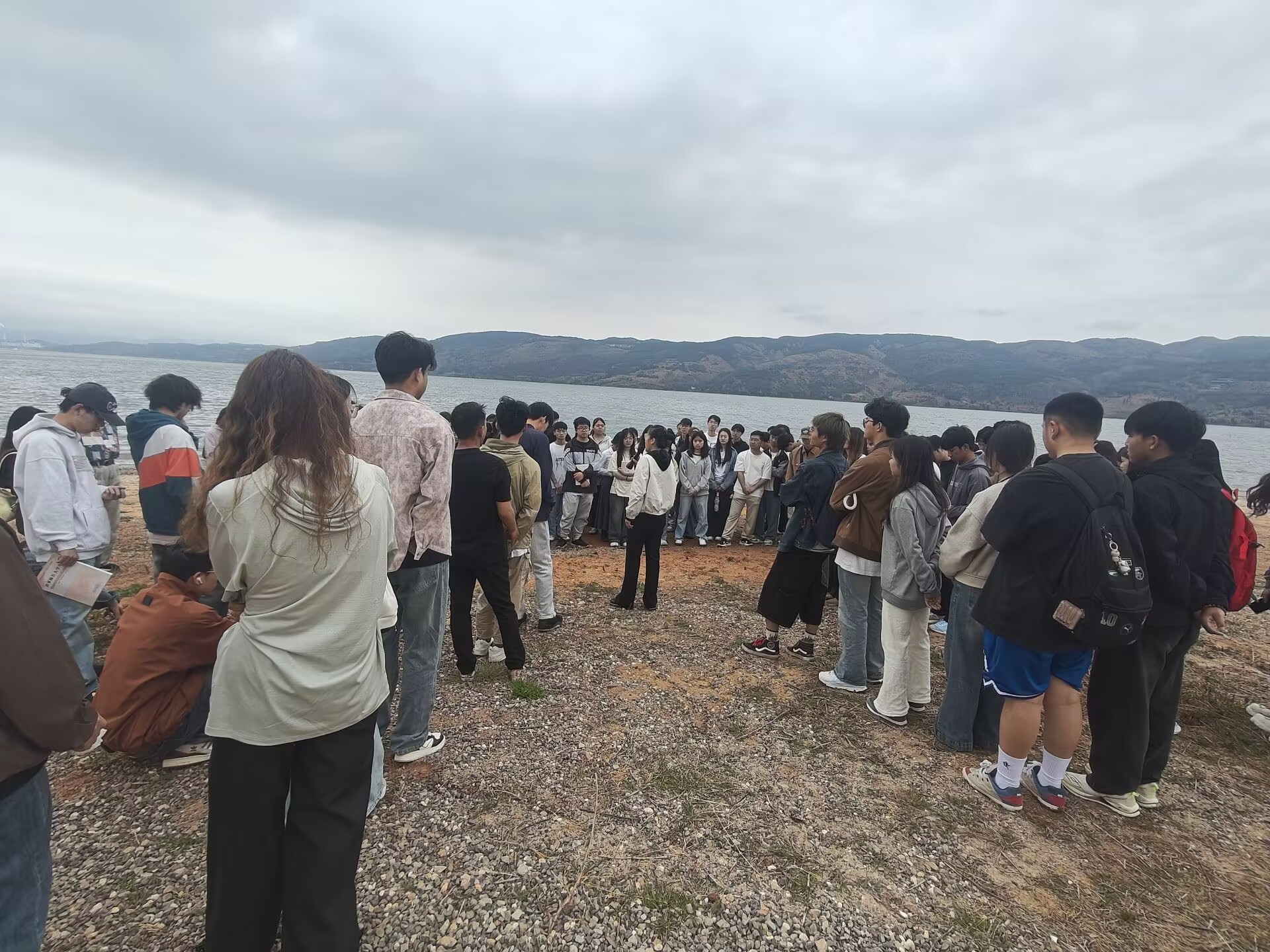 党委副书记李昆峰和校党委委员、副校长齐武福以“厚植绿色底色 建设美丽中国”为主题为学生上了一堂精彩的行走的思政课。李昆峰要求大学生以实际行动践行生态文明理念,把阳宗海作为自己的第二故乡,共同守护好阳宗海,真正感受习近平总书记提出“留得住绿水青山,记得住乡愁”的殷殷嘱托。齐武福以“厚植绿色底色 建设美丽中国”为主题为学生上了一次行走的思政课,他讲述了阳宗海由污染到治理的历程,对阳宗海的产业结构调整、文旅发展、依法治理和技术治理等方面进行了深入解读。课程以行走的思政课、实践活动的方式开展,学生们一路捡拾阳宗海边上的垃圾,做到理论学习与实践锻炼相结合,展现了当代大学生践行习近平生态文明思想的责任与担当。