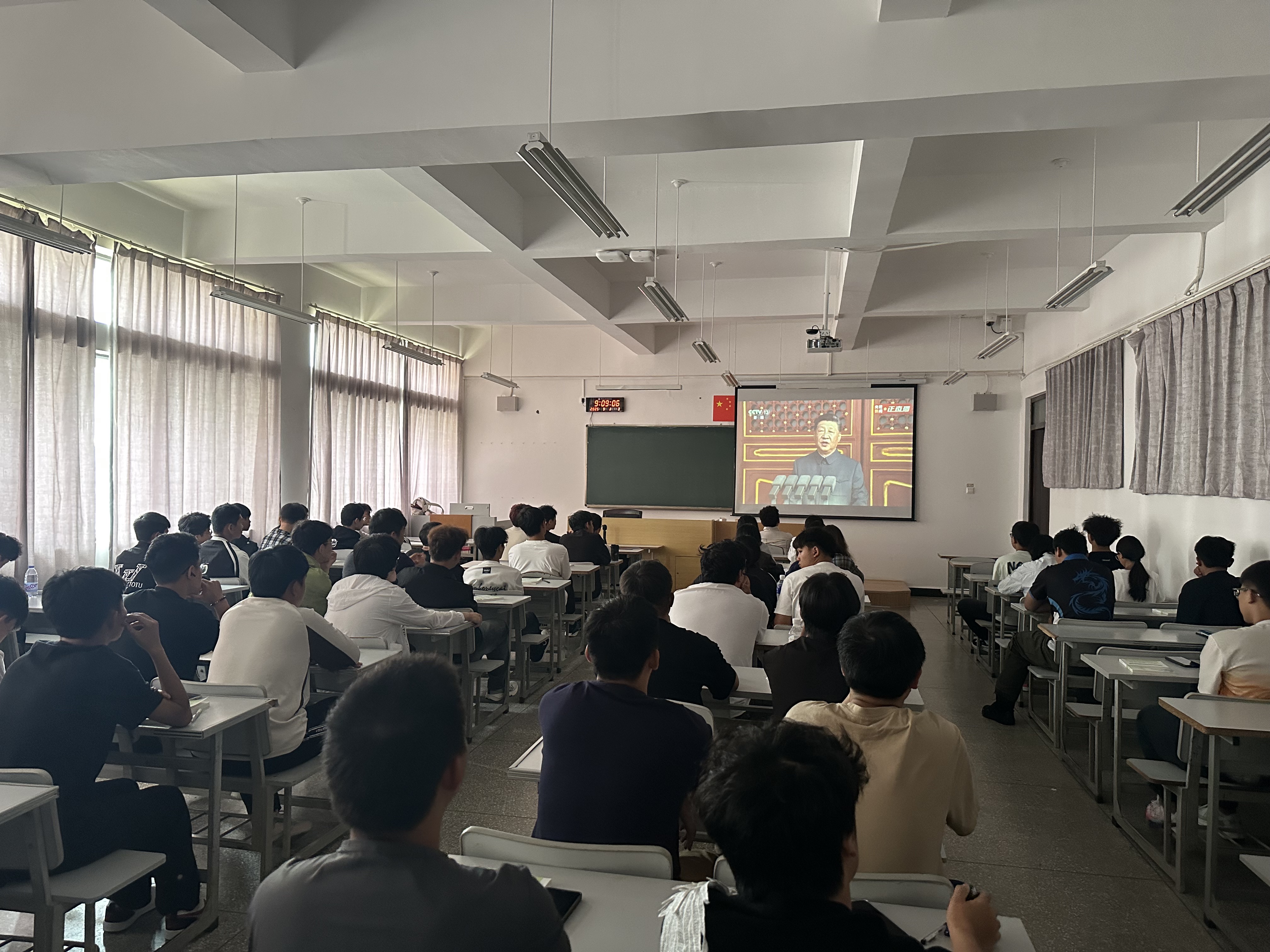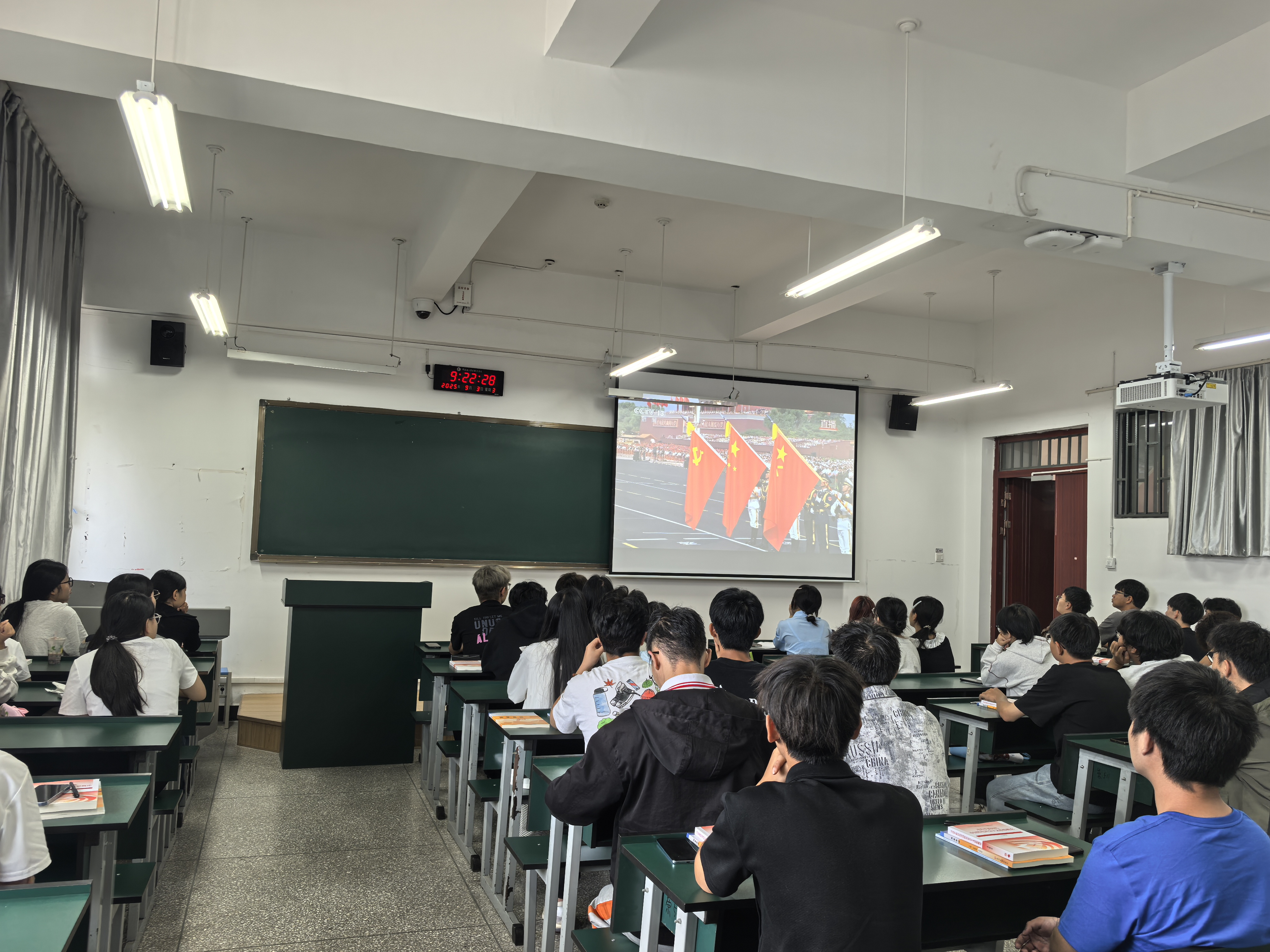 9月3日上午,纪念中国人民抗日战争暨世界反法西斯战争胜利80周年大会在北京天安门广场隆重举行。beat365亚洲体育官方网站思政课教师结合授课内容,组织学生收看大会盛况,直观感受国家的力量,深化学生对爱国主义、历史责任的理解,上好一堂“思政金课”。