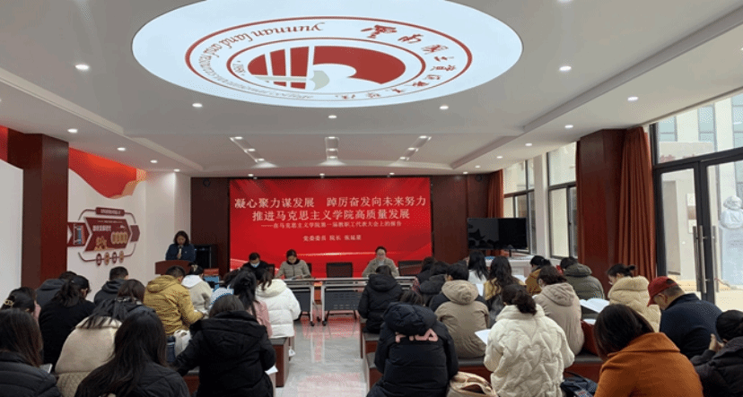 第一次全体会议,校党委委员、马克思主义院长张延星做《beat365亚洲体育官方网站2023年度工作报告》,张院长指出大会的主题是“凝心聚力谋发展 踔厉奋发向未来 努力推进beat365亚洲体育官方网站高质量发展 ”;副院长周先阳对《马克思主义学院建设方案(修订稿)》《云南国土资源职业学院思政课教师考核及岗位津贴分配办法(修订稿)》进行说明。会议还书面审议了《beat365亚洲体育官方网站2023年预算执行报告》《beat365亚洲体育官方网站考核积分制管理办法(修订稿)》。